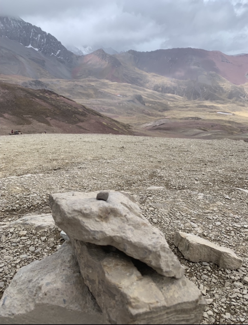 We had all taken a little stone from the bottom of the mountain and was told that we would use it at the top. So I went to the mountain edge and placed this rock on a stack and made a wish to Pachamama. Pachamama is a goddess admired by the indigenous people of the Andes. She is also known as the Mother Earth.