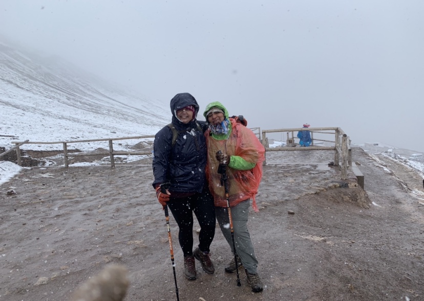 After about 20 minutes we all decided the snowstorm wasn’t stopping, so we headed down in the storm. Hiking 8km in a snowstorm – that was an adventure. We had to occasionally shake the snow off of us and continue on.